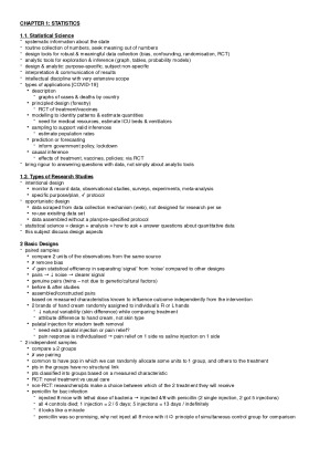 These notes (Part 1) comprise Chapters 1-5 while the remaining notes are available in Part 2 & 3 due to size constraint on this site. Notes are clearly organised and written in point forms. Each chapter is 2-5 pages long yet contains all essential info from the lecture notes + explanation stressed by lecturers + relevant diagrams. This set of notes is a great resource for the assessment/quizzes and a life-saver during the final exam - which I managed to get 88% :) TOPIC LIST C1: Statistics C2: Language of statistics – describing, summarising, visualising C3: Principles of communicating analytics C4: Foundations for inference C5: Confidence intervals
