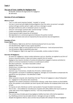 EXAM NOTES Topic 3 - Consumer Protection: Consumer Guarantees, Unfair Terms Unconscionable Conduct Topic 4 - The Law of Torts: Liability for Negligent Acts Topic 5 - The Law of Business Organisations: Agency and Partnerships Topic 6 - Business Ethics and The Law