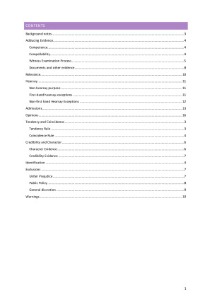 Final mark: 85 Contains summaries of all topics covered in Evidence exam and assessments (excluding Privileges), in an organised and accessible format for your last-minute cramming needs!