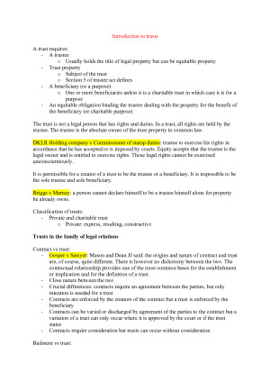 These equity notes got me an HD in the final exam. Very detailed with cases and legislation highlighted for convenience. Contains the following topics: fiduciary obligations, trusts, express private trusts, variation and termination of express trusts, trustees, beneficiaries, charitable trusts, resulting trusts, constructive trusts, equitable estoppel and confidential information, remedies. These are very long and could replace the readings and/or lectures as I read the whole textbook - priced very fairly considering.