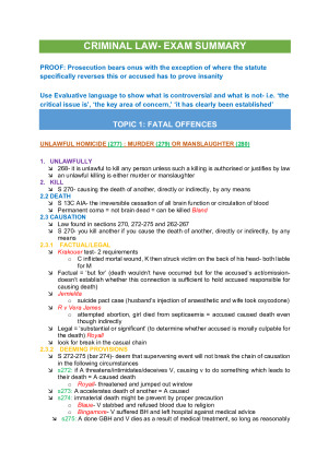 Colour-coded & Organised Notes- Element by Element (Includes Relevant Case Names & Short Case Summaries) 1- Fatal Offences 2- Assault 3- Wounding & GBH 4- Threats & Stalking 5- Sexual Offences 6- Property Offences 7- Attempts, Conspiracies & Parties 8- Defences