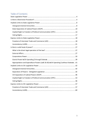 These notes are efficient and exam-focused. It is condensed with an emphasis on excluding unnecessary information. The notes have been divided between State and Commonwealth laws to minimise confusion. The cases have been integrated into the notes and abridged, making it easy to analogise with the relevant facts. Cases are easily colour-coded. Blue equals legal authority and purple are the facts of the case. Words in BOLD are included to tell you what to do with the adjacent sentence. For example: - "Note" means keep this in mind. - "Rule" is the legal principle to be stated. - "Define" is an opening statement laying out the issues. - "OTF' means only apply when the issue is relevant on the facts.
