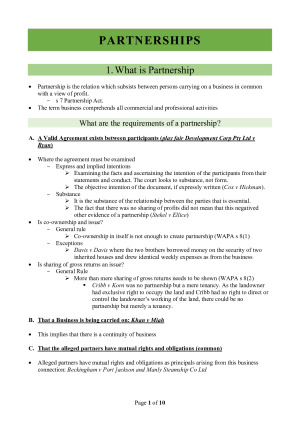 A step-by-step guide to problem-solving for a Corporations Law exam question. In-depth and extremely helpful for any law student. Extensively covers: - Partnerships - Basic Concepts of Corporations Law - Corporate Personality and Incorporation Process - Corporate Governance Rules, Shares & Capital Formation - Corporations and Third Parties - Corporations and Internal Regulation - Directors Duties - Specific obligations: disclosure, securities issues, and insolvency - Members’ remedies