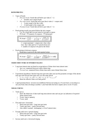 Contains all topics, including: 1A - NPV. IPR and TPB 1B - Investment Assets, Effective Returns and Inflation 2 - Discounted Cash Flow and Multiples Valuation 3 - Debt, Interest Rates and Yield Curves 4 - Cash Flows and Unlevered Project Valuation 5 - Interest Tax Shields 6 - Portfolios 7 - Utility Functions 8 - Capital Asset Pricing Model 9 - Market Efficiency and Regulatory Bodies 10 - Capital Raising and Payout Policy 11 - Return Distributions and Measures of Central Tendency