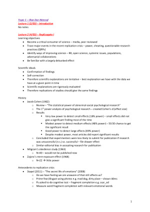 I made these notes using all lecture material. Studying with my extensive notes will enable you to get a mark like mine or higher!! These notes are extremely detailed and provide you with all the information you need for the final exam. Lecture topics included in these notes: Topic 1 – Illan Dar-Nimrod [Note: there was no content in lecture 1] Lecture 2 – Replicagate I Lecture 3 – Replicagate II Lecture 4 – Replicagate III Lecture 5 – Existential Social Psychology I: Terror management theory Lecture 6 – Existential Social Psychology II: Meaning maintenance model Lecture 7 – Psychology of religion Lecture 8 – Genes and the psychosocial environment I Lecture 9 – Genes and the psychosocial environment II Topic 2 – Rebecca Pinkus Lecture 10 – The self I Lecture 11 - The self II Lecture 12 - The self III Lecture 13 - The self IV Lecture 14 - The self V Lecture 15 - The self VI Lecture 16 - The self VII Lecture 17 - The self VIII Lecture 18 - The self IX Topic 3 – Fiona White Lecture 19 – Aggression Lecture 20 – Strategies to reduce aggression Lecture 21 – Sex discrimination Lecture 22 – Reducing sex discrimination Lecture 23 – Sexual minority discrimination Lecture 24 – Reducing sexual minority discrimination Lecture 25 – Race discrimination Lecture 26 – Reducing race discrimination