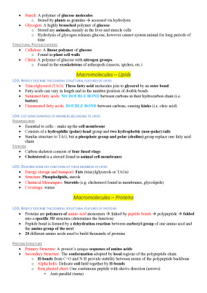Structured & SUPER detailed BABS1201 Notes from all weeks: - Scientific Literature - Life (water, pH) - Cells I (prokaryotes, eukaryotes, cells, endosymbiosis) - Cells II (endomembrane system, cytoskeleton) - Macromolecules: carbohydrates, lipids, proteins, nucleic acids) - Cell Integrity (cell membrane, fluid mosaic model, structure of membrane, non-selective diffusion) - Cellular Transport: facilitated diffusion, active transport, endocytosis - Metabolism I: Metabolic concepts (metabolism, catabolism, anabolism, enzymes, ATP, respiration, fermentation, redox) - Metabolism II: Extracting energy from food (glycolysis, TCA, oxidative phosphorylation, chemiosmosis) - Photosynthesis: Synthesizing food from energy (light reaction, calvin cycle) - DNA replication - Cell Division and Reproduction (mitosis and meiosis) - Gene Expression I: Transcription - Gene Expression II: Translation - Polymerase Chain Reaction - Mutations - Mendel's Laws of Hereditary - Mechanisms of Inheritance - Population Genetics INCLUDES: Easily-read, aesthetic notes which are colour-coded and structured clearly based on learning outcomes and key words INCLUDES: Step-by step description of biological pathways which INCLUDES: all content covered (even niche ones) to prepare you for the exam = ensure you know every little detail covered in exam