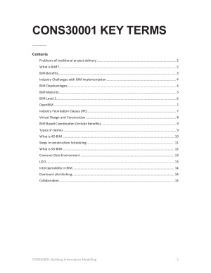 A comprehensive set of H1 revision notes (2020), featuring: 1. Summaries of all required BIM terms✅ This document contains all information necessary for the subject in order to help you get that H1! All notes have been categorized into their respective lecture topics to make the document as understandable as possible. These notes are suitable for: ✅ - Students who are having trouble UNDERSTANDING the lecture content and want written, detailed explanations from sources other than just the lecture slides. - Students who are looking to have a compact REFERENCE to assist during the semester. The coloured lecture summary boxes will assist you with regular revision and the clear structure, titles and colours used in my notes will help you to find information quickly. - Students who don’t want to or don’t have the time to read the textbook, attend and review the lectures, do the tutorial questions, attend tutorials and CONSOLIDATE all of this knowledge into their own notes weekly. Alternatively, students that have FALLEN BEHIND and are struggling to catch up will benefit from my complete set of notes. - Students who are preparing to do the MID-SEMESTER TEST or FINAL EXAM and need complete and easy-to-understand notes to cram with, or who need a clear collection of all examinable material that they can include in their own summaries.