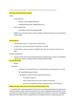 Topics Covered Topic 1: Introduction: The framework of Australian Administrative Law Topic 2: Judicial Review: The basic concepts Topic 3: Judicial Review: Procedural Fairness (Natural Justice) Topic 4: Judicial Review and Statutory Authorisation Topic 5: Judicial Review and the ban on fettering discretion Topic 6: Unreasonableness and no evidence Topic 7: Subordinate (delegated) Legislation Topic 8: Judicial Remedies for unlawful government action Topic 9: The AAT and other Merit Appeals Tribunals Topic 10: Standing for judicial review and Merits Appeal Topic 11: Access to Government Information Topic 12: Other methods of accountability