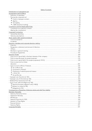 Comprehensive notes for the Corporations Law exam! Using these notes enabled me to achieve 82% for the exam and 90% on the mid-semester multiple choice quiz in Semester 1 2021. The notes cover all essential topics for the exam including: - Introduction to Corporations Law - Incorporation and its Effects - The Constitution and Replaceable Rules - Corporate Contracting - Share Capital, Debt Capital & Dividends - Directors, Members and Corporate Decision Making - Directors' Duties - Consequences of Breaches of Directors' Duties and Relief from Liability - Members' Remedies - Corporate Mortality - Notes are organised in a coherent and logical manner with subheadings, bolding and numbering. - All relevant cases from the reading guide are referenced and the important principles provided even those added to the reading guide in 2021! - Full case summaries provided and all relevant legislative provisions. - Furthermore, the notes include detailed templates (including introduction and conclusion) for all major topics including s 588G (insolvent trading), corporate contracting, directors' duties and members' remedies which were all assessed on the Semester 1 2021 exam. These templates allow for the particular facts in the scenario to be slotted into the sentences ensuring that time can be effectively spent identifying materials facts and formulating cogent arguments.