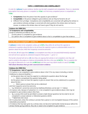 Comprehensive notes including all topics covered in lectures. Easy to follow structure with colours to help with separating the different steps. Includes case summaries and key legislation sections. Topics: - Relevance - Competence and compellability - Privilege - Examination of witnesses - Character and credibility - Right to silence - Tendency and coincidence - Hearsay - Admissions - Illegally obtained evidence - Opinion evidence