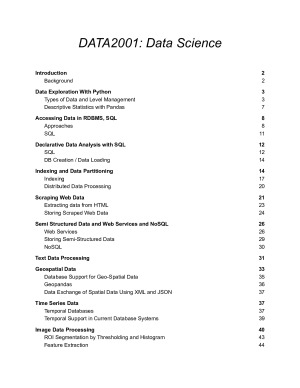 33 pages of comprehensive theory notes that contain the key information from lectures, tutorials, and additional assigned readings. 10 extra pages of extensive SQL information. This is extremely useful to reference. I used it even after the subject in a data science internship. These notes helped me do well on the exams and assignments, as well as conceptually understand the topics very well. I continue to refer to these notes on extra projects outside of uni work. Topics Covered In Theory Notes: - Data Exploration with Python - Accessing Data in RDMBS with SQL - Declarative Data Analysis - Indexing and Data Partitioning - Scraping Web Data - Semi Structured Data and Web Services - Text Data Processing - GeoSpatial Data - Time Series Data - Image Data Processing - Big Data Some Topics Covered in Additional SQL Notes: - Filtering and Summarising - Transforming - Joins - Dealing with Incomplete Data - Sub Queries