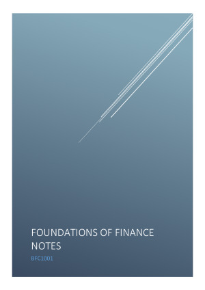 These notes got me an HD (94) and helped me dux the unit! Comprehensive, detailed and perfect to use for assignments and the final exam. Topics: - Intro to financial markets and institutions - Interests rates, the yield curve and monetary policy - Time value of money - Annuities - Capital budgeting - Intro to managed investment funds - Financial institutions - Finance using debt securities - Capital structure and equity - Risks in finance - International trade