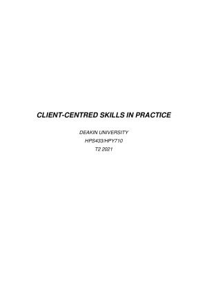 Detailed, comprehensive notes taken from the lecture and seminar content. Will save you heaps of time preparing for the quizzes, especially if you're completing your thesis at the same time! A great resource to have alongside you as you study, these notes have served me well :) Includes the following content: MODULE 1: STARTING WITH A CLIENT MODULE 2: MICRO-COUNSELLING SKILLS AND CLOSING A SESSION MODULE 3: CROSS-CULTURAL PSYCHOLOGY AND ASSESSMENT MODULE 4: MODELS OF REFLECTIVE PRACTICE MODULE 5: ASSESSMENT AND CASE FORMULATION MODULE 6: USING OUTCOME MEASURES IN CLIENT-CENTRED PRACTICE MODULE 7: ETHICAL PRACTICE FOR HELPING PROFESSIONALS MODULE 8: WORKING IN CARE TEAMS MODULE 9: CHALLENGES IN WORKING WITH CLIENTS MODULE 10: RECOVERY-BASED PRACTICE MODEL MODULE 11: E-MENTAL HEALTH Thanks! Good luck with the unit :)