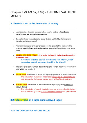 Comprehensive Principles of Finance textbook notes for all course topics - written by a H1 student. Based on the Intro to Corporate Finance Asia Pacific (2nd ed) book. Covers: - Intro to Corporate Finance - Time value of money - Bond valuations - Risk, return and the CAPM - Capital budgeting - Payout policy - WACC - Options