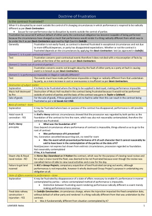 Concise notes with visual cues, structured based on how problem questions should be answered! Includes succinct summaries of major cases, answer guides as well as how the different topics can relate to each other. - Termination for breach - Termination for Repudiation - Termination for Delay - Penalties - Restitution - Actions for Debt - Frustration - Common Law Vitiating factors - Statutory Vitiating Factors