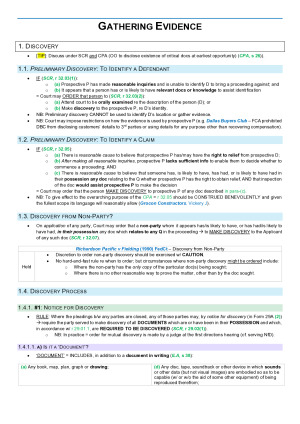 Comprehensive exam notes which secured me an HD (88) in the LDR exam and unit overall. The notes are well-structured with headings, sub-headings, and cross-references, and with each topic organised in the way it should be discussed in the exam (ie. as a skeleton / flowchart). Tips from the Chief Examiner are also scattered throughout the notes, helping you maximise your marks and avoid common errors. Topics include: 1) Legal Problems, Disputes and the Civil Justice System. 2) Jurisdiction. 3) Parties and Claims. 4) Commencing Proceedings, Service and Appearance. 5) Pleadings. 6) Gathering Evidence. 7) Urgent Applications. 8) Costs. 9) Wrapping up Proceedings. 10) Group / Representative Proceedings. 11) Litigation in the Digital Age.