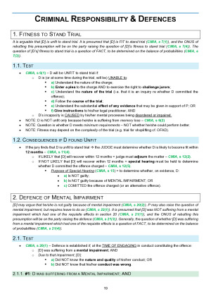Comprehensive exam notes and script, which secured me an HD in Criminal Law and Procedure 2. The notes are well-structured with headings, sub-headings, and cross-references, and with each topic organised in the way it should be discussed in the exam (ie. as a skeleton / flowchart). The notes also include pre-written starter sentences to save time in the exam. Tips from the Chief Examiner are also scattered throughout the notes, helping you maximise your marks and avoid common errors. Topics include: - Criminal Procedure (incl. examinable sections in the Reading Guide, which are not included in the lecture slides). - Criminal Responsibility and Defences. - Strict and Absolute Liability. - Drug Offences. - Property Offences. - Attempts. - Complicity.