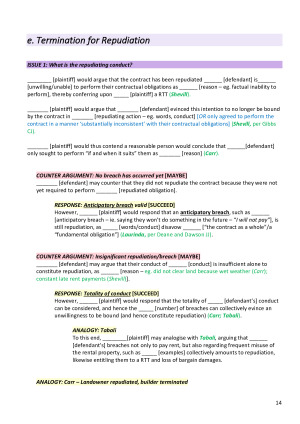 Very comprehensive Contract B exam notes that enabled me to get a HD (84) for the subject. The notes contain all topics, a full script, colour-coded cases and legislation, and lots of counter arguments. Topics covered: - Termination (condition, intermediate terms, repudiation) - Restrictions on right to terminate - Remedies - Frustration - Vitiating factors (common law & statutory)
