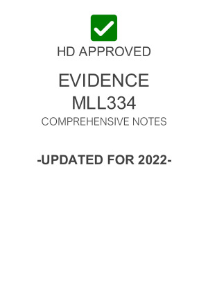 Phew, I can't believe I actually did it. I got a HD in Evidence. Let me tell you, it really wasn't easy, but these well structured and detailed notes helped me pull out all the intricate rules of hearsay in the exam. I really hope you get as much out of reading these as I got out of writing them. These notes cover the following topics: 1 NATURE OF EVIDENCE LAW > INTRODUCTION TO THE UNIFORM EVIDENCE ACTS > CATEGORIES OF EVIDENCE: DIRECT & CIRCUMSTANTIAL > ADMISSIBILITY OF EVIDENCE > BURDEN OF PROOF > STANDARD OF PROOF > MATTERS THAT DO NOT HAVE TO BE PROVED IN COURT > OUTLINE OF THE EVIDENCE ACT 2 VERBAL EVIDENCE & WITNESSES > VERBAL EVIDENCE > THE EXAMINATION OF WITNESSES: Order of Examination s 28 > CROSS-EXAMINATION: Credibility evidence > RE-EXAMINATION > RE-OPENING A CASE 3 DOCUMENTARY EVIDENCE & OTHER EVIDENCE > TYPES OF EVIDENCE > PROVING DOCUMENTS > VOLUMINOUS AND COMPLEX DOCUMENTS 4 RELEVANCE > ADMISSIBILITY OF EVIDENCE > RELEVANCE UNDER THE EVIDENCE ACT 2008 (VIC) > WITNESS EXAMINATION 5 HEARSAY > THE RULE AGAINST HEARSAY EVIDENCE: s 59 > EXCEPTIONS TO THE HEARSAY RULE > NOTICE REQUIREMENTS: s 67 > EXCEPTION: ADMISSIONS: s 81 6 ADMISSIONS > WHAT ARE ADMISSIONS > EXCLUSION OF CERTAIN ADMISSIONS > EVIDENCE OF SILENCE: s 89 > DISCRETIONARY EXCLUSION OF ADMISSIONS: s 90 7 OPINION EVIDENCE > THE OPINION RULE: s 76 > EXCEPTIONS TO THE OPINION RULE > EXPERT WITNESSES: s 79 > COMMON LAW EXPERT EVIDENCE RULES > DISCRETIONARY EXCLUSION > OTHER OPINION RULE EXCEPTIONS > EVIDENCE OF PREVIOUS JUDGMENTS OR CONVICTIONS 8 TENDENCY & COINCIDENCE EVIDENCE > THE RULE AGAINST TENDENCY AND COINCIDENCE EVIDENCE > THE TENDENCY RULE: s 97 > THE COINCIDENCE RULE: s 98 > ADDITIONAL CONSIDERATIONS 9 CREDIBILITY & CHARACTER EVIDENCE > CREDIBILITY EVIDENCE: DEFINITION > ‘THE CREDIBILITY RULE’: s 102 > EXCEPTIONS TO THE CREDIBILITY RULE > THE USE OF CREDIBILITY EVIDENCE IN COURT 10 PRIVILEGE > CLIENT LEGAL PRIVILEGE > RELIGIOUS CONFESSIONS > JOURNALIST PRIVILEGE > PRIVILEGE AGAINST SELF-INCRIMINATION > MATTERS OF STATE > SETTLEMENT NEGOTIATIONS 11 DISCRETIONS > MANDATORY AND DISCRETIONARY EXCLUSIONS