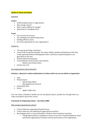 Comprehensive notes that include all critical theories and definitions for assignments, group presentations and the final exam. The layout is easy to follow and navigate, with clear section and subsection headings. Final section is a succinct review of all sections covered. CONTENTS 1. Overview/Intro 2. What Changes and How? 3. Culture, Teams 4. Technology 5. M&A, Downsizing 6. Communication 7. Strategy 8. Leadership 9. Training 10. Individual Differences, Emotions 11. Cynicism, Resistance, Commitment 12. Review