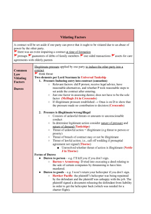 Comprehensive notes including case authorities, and red flags to consider for each topic Termination - By agreement - By breach Repudiation Consequences of RTT Remedies for Termination Frustration Vitiating Factors (Both CL and Statutory)