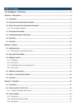 Exam steps to provide a method to answer Torts exam questions. Topics include: - Tort of negligence - Trespass to person/property - Tort of private nuisance - Apportionment - Vicarious Liability - Defences - Damages