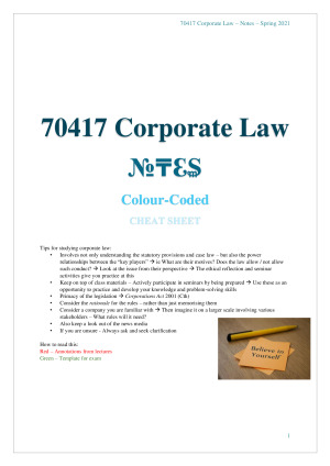 HD COLOUR-CODED 70417 CORPORATE LAW NOTES WITH SCAFFOLDS