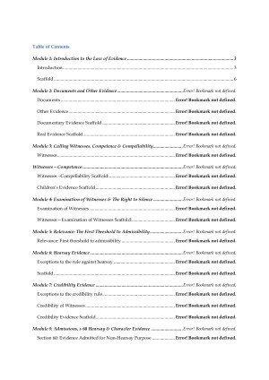 These notes were fundamental to my success in Evidence (90 exam Result). 60,000 words may seem like a lot but they are a comprehensive set of notes that are organised in an effective manner to ensure you can quickly locate information during the take-home exam. Our exam was a 6-hour take-home exam, which meant it was extremely important to have detailed scaffolds of each topic to answer the problem questions as easily and quickly as possible. I was able to achieve a 90 in the final exam, which was primarily due to my exam scaffolds and with these scaffolds, you will be one step closer to achieving this too. They have detailed explanations of each topic, including detailed case summaries and outlines of the relevant legislation. However, more significantly, they have detailed exam scaffolds for each topic. They cover the following topics: - Documentary and real evidence: - Witnesses: competence and compellability - Examination of witnesses. - Relevance - Hearsay Evidence - Credibility Evidence - Admissions - Opinion Evidence - Tendency and coincidence evidence - Privilege - Discretionary and mandatory exclusion of evidence. - Judicial warnings, comments and directions about evidence