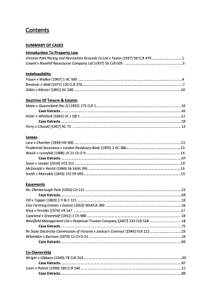 Notes are numbered and include a detailed contents page for easy navigation. Clear and comprehensive notes on all topics covered in the subject are included, based on content from lectures, seminars and the textbook. Notes also contain extensive case summaries of relevant cases, and logical and easy to follow step-by-step processes for answering problem questions on each main concept.