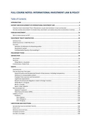 - Topics include: foreign investment, investment treaty arbitration, jurisdiction, merits (expropriation, fair and equitable treatment etc), limitations and exceptions, remedies + more - Covers 10 weeks of lectures and readings - Includes in-depth case analysis across all topics
