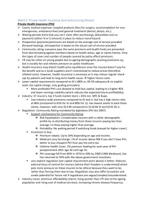 Notes cover all topics of the course in week-by-week. I've summarised the main concepts emphasised by the lecturer, and these very concise notes make for effective study revision, cramming for exams and comprehension. They enabled my achievement of a HD mark. Week 1: Introduction and Review Week 2: Economic & Commercial Environment Week 3: General Insurance & The Need for Financial Products Week 4: The Life Insurance Industry Week 5: Private Health Insurance (and some pricing theory) Week 6: The Role of Regulation in the Financial Sector Week 7: The Banking Industry & Profit Week 8: Product Development Week 9: Features & Risks of Financial Contracts + Types of Risks Week 10: Superannuation, Funds Management & Fiduciary Duty Week 11: Interaction between Pricing, Capital, Reinsurance, Underwriting, Profits