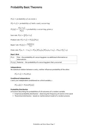 This note set covers the full subject of COMP30027 – Machine Learning for the 2022 Semester 1 Curriculum, including all covered concepts. The content of these notes were derived from the textbook, lecture notes, lecture recordings, workshop/tutorial content and examples. These notes include: - Multiple diagrams, tables and highlighted equations that are all clearly set out - Comprehensible diagrams and examples for difficult concepts - Summary tables that compare concepts taught, including advantages and disadvantages - Clear separation and format of concepts into topics and sections - Hyperlinked bookmarks of sections that can be easily navigated if opened with a PDF reader software The main topics covered include (but are not limited to): - Machine Learning Introduction (terminology, variables etc.) - Probability & Naïve Bayes (incl. probabilistic theorems, distributions, Naïve Bayes, data type conversion, KDE etc.) - Classifier Performance (incl. performance, test data selection, evaluation metrics, multiclass evaluation, generalisation, bias & variance etc.) - Decision Trees, K-NN, SVM (incl. one-R, decision trees, attribute selection, ID3 algorithm, instance-based learning, K-NN, SVM etc.) - Interpretation & Visualisation (incl. interpreting models, parameters, visualisation etc.) - Regression (incl. linear regression, optimization, evaluation, logistic regression etc.) - Further Classification (incl. classifier combination, feature selection & wrappers, filtering, HMM etc.) - Neural Networks (incl. neural networks, perceptron, deep learning & CNN etc.) - Unsupervised Learning (incl. clustering, GMM & EM etc.) - Semi-supervised Learning (incl. self-training, active learning, data augmentation) These notes helped me obtain an H1 in COMP30027: Machine Learning. They are perfect for both cramming and continuous study throughout the subject. The topics are covered in mostly the same order as they are covered in lectures, and is succinct and compact. All information included is relevant and important for the exam.