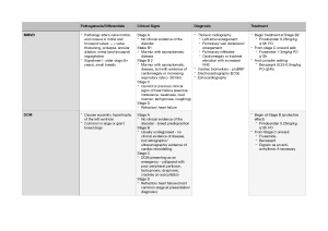 Summary tables of small animal diseases - best used as references for your final exams, small animal pracs or rotations, or for future vet life! Contains info on pathogenesis, clinical signs, relevant diagnostic tools and treatments.