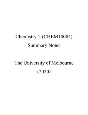 A complete set of notes for Chemistry 2 covering all area of studies that you would ever need. It follows a topic-by-topic structure in chorological order of the lectures, summarizing concepts and definitions with succinct dot points and supplementary diagrams, with all information categorized into a hierarchy of topics and sub-topics. It also includes a COMPLEMENTARY SUMMARY TABLE for all organic reaction in the subject. This is catered for the deadline fighters who simply want to Ctrl-F the whole subject with only one single document, the intellectually curious who are perhaps interested in getting ahead, and the study-holics who everything the lecture has covered to get that sweet H1 score. The 12-week contents of the summary notes include: 1- 4. reactivity of organic molecules; the nature of chemical change; 5 -8. the structure of the atom; 9 -12. electrochemical processes and the structure and reactivity of metal compounds. Check out my summary notes for other level 1 to 3 science subjects on your right!
