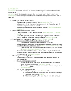 Detailed, colour-coded structure notes to be used during exam. Designed to be followed while completing questions - these notes include all relevant points to be made along with the corresponding case/legislation references. Topics covered: - Fixture vs Chattel - Ownership - Possession - Bailment - Agency - Deceptive/Misleading Conduct - Sale of Goods - Sale of Goods by a Non-Owner - Consumer Guarantees (Goods) - Consumer Guarantees (Services) These notes are the perfect last-minute, foolproof accompaniment to your exam preparation as you can follow them step-by-step while completing a question.