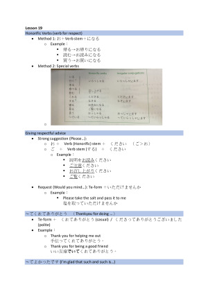 Complete notes to Genki Book 2 including: Grammar, conjugations, kanji list, vocabulary list. Contents include: - Lesson 19: 出迎え Meeting the Boss - Lesson 20: メアリーさんの買い物 Mary Goes Shopping - Lesson 21: どろぼう Burglar - Lesson 22: 日本の教育 Education in Japan - Lesson 23: 別れ Good-bye