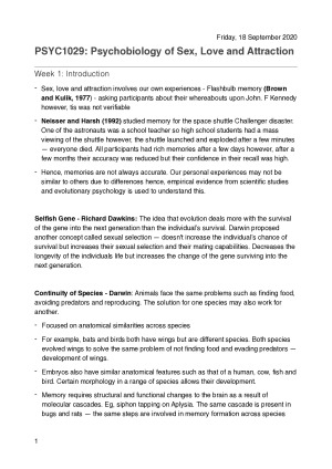 Covers all topics of the course including: 1. Introduction 2. Weird Sex 3. Mating Strategies 4. Is Bigger Better? 5. Sperm Wars 6. Female Anatomy 7. Female Orgasm 8. Experience and Sex 9. Attraction 10. Chemical Romance 11. Desire for Variety 12. Consequences of Desire for Variety 13. Love 14. Addicted to Love 15. Bad Love 16. The Brain 17. Brain and Love 18. Culture on Love, Sex and Attraction 19. Menopause 20. Parental Bond 21. Motherhood 22. Fatherhood