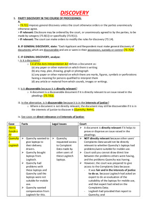 I used these notes during the Dispute Resolution & Ethics exam in Semester 1 of 2022, achieving 90% High Distinction. The notes: > provide a step-by-step guide to answering exam questions; > are succinct yet comprehensive; > distil all the content from lectures, readings and tutorials into easy-to-follow answer skeletons; and > include unique details, examples and cases which will make your answers stand out, pushing you into a higher grade band. The notes cover the following topics: 1 Introduction to civil dispute resolution 2 ADR 3 Pleadings and process 4 Pleadings continued Disclosure 5 Disclosure and Privilege 6 Privilege, applications and advocacy 7 Investigatory processes 8 Maintaining the status quo 9 Costs and case management 10 Negotiation 11 Appeals and judicial review 12 Exceptional cases, ethics, and exam You will be delighted with your purchase.
