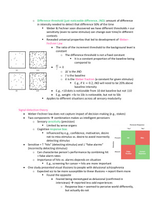 These notes are extremely detailed and cover all knowledge modules. They are easy to search which makes them ideal for using during the exam. I was able to achieve a score of 94 by utilising these notes. The following topics are covered: Week 1: Psychology, scope, and definitions Week 2: Heritability, reflex, and instinct Week 3: Emotions and motivation Week 4: Brain/mind - macroanatomy Week 5: Brain/mind - microanatomy Week 6: Brain/mind - sensation and perception Week 7: Learning Week 8: Memory and attention Week 9: Intelligence Week 10: Language I have used coloured and bold text, arrows, and diagrams to make the content clear and easy to navigate.