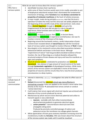 Inspired by the Cornell Note Taking System, fully tabulated summary notes with information categorised accordingly in an organised manner. Lecture content and concepts made easy to understand with dot points and short sentences for a quick review before exams. Diagrams included to help with understanding content. Perfect for active recall - main ideas on the left column and details on the right column so feel free to cover either column to test your knowledge of concepts. Content included - Why have a nervous system - Cellular basis of neuronal communication - Neural communication - Synaptic plasticity - How to study neurons & brains - Tactil sensation & perception - Auditory sensation & perception - Control of movements - Modulation of movement - Control of gaze - Time, place and space - Fear neuroscience - Reward - Nervou system disorders - Metaplasticity - Evolution of nervous system - Neuroscience of language - Social cognition - Other realms of cognition - Consciousness - Emphasised concepts mentioned in practice questions - Motor modulation summary - Memory summary - Positive and aversive emotional perceptions summary - Nervous system disorders summary - Evolution and language summary - Higher functions summary *Lectures not included - , , , , , , , , , , *Disclaimer: these notes should be used aid your revision and not used solely for passing exams.