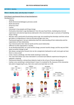 Developmental psychology summary notes, covers the entire course content! Includes - INTRODUCTION - IDENTITY - THEORY OF MIND - HUMAN GENETICS - PRENATAL DEVELOPMENT - ENVIRONMENTAL IMPACTS ON GROWTH - COGNITIVE THEORIES - INTELLIGENCE AND ACADEMIC ABILITIES - CORE KNOWLEDGE THEORIES - SOCIOCULTURAL THEORIES OF COGNITIVE DEVELOPMENT - THE SOUNDS OF SPEECH - THE WONDER OF WORDS - GRAMMAR - SOCIAL AND EMOTIONAL DEVELOPMENT - DEVELOPMENT WITH PEERS - DEVELOPMENT WITH FAMILY - EMOTIONAL REGULATION AND TEMPERAMENT - FAMILY, PEERS AND EMOTION