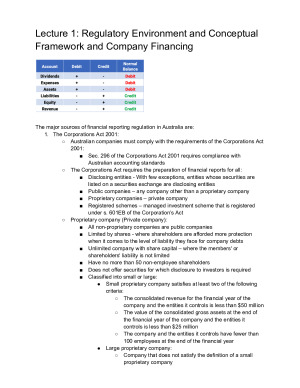 - Difficult unit, a detailed notes document of all the topics from Week 1 to Week 12 (No new content for 13) - Notes cover all content required for weekly homework, in-class activity, quizzes, assignment, presentation and final exam - Lots of formulas to help when completing quizzes - Lots of required Accounting Standards to help when completing the assignment and presentation Topics Covered: - Regulatory Environment and Conceptual Framework and Company Financing - Accounting for income tax - Accounting for Property, Plant and Equipment (PPE) - Accounting for intangibles - Accounting for impairment - Accounting for leases - Revenue Recognition and Presentation of Financial Statements - Presentation of Financial Statements - Statement of Cash Flows - Overview and Direct Method - Statement of cash flows - Indirect method - Alternative reporting framework