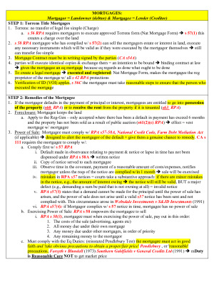 These notes provide the crucial case and legislation references to complete the Land Law exam with step-by-step instructions for solving specific questions. They are colour coded and extract the fundamental principles in an easy-to-read style. The following topics are covered: - Key Concepts - Torrens System: Indefeasibility & Exceptions - Co-Ownership - Leases - Assignment - Remedies for Leases - Mortgages - Easements - Freehold Covenants