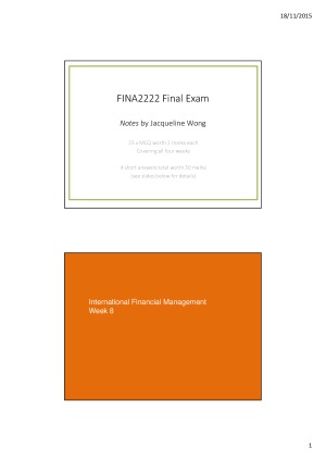 Everything you need to know for the FINA2222 final exam (second half of the unit only), gives detailed outline of all FINA2222 topics covered in the finals and the tutorials covered.