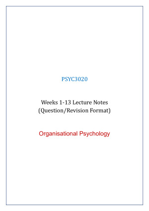 ~ PSYC3020 notes - HD level (93 in final exam, 91 in final report). ~ Concise, yet extremely thorough, only exam-relevant information included. Supplemented by textbook and tute content. Lecture content (Weeks 1-13) are included, explained in my own words, in the form of potential exam questions for revision.