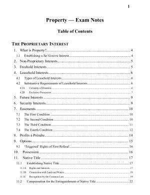 Property final exam notes (H1 - 87) for both hypothetical and essay sections. Includes all relevant rules, principles and case analogies. Also includes exam-ready condensed case tables.