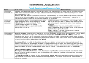 Corporations Law High Distinction (HD) Notes inc Exam Script