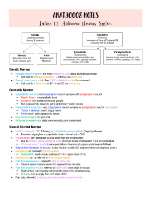 Subject notes for UniMelb ANAT30008