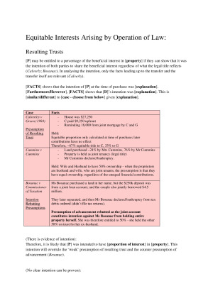 Spent lots of time writing these notes - all relevant case summaries are included with each topic and subsection. Topics include: Topic 1: Mortgages Topic 2 : Equitable Interests Arising by Operation of Law Topic 3 : Co-ownership Topic 4: An introduction on to the Enforceability of Property Interests Systems of Title Topic 5: Overview of the Torrens System and Conveyancing Topic 6: The Principle of Indefeasibility of Title Topic 7: Exceptions to Indefeasibility of Title Topic 8: Unregistered Interests Under the Torrens System