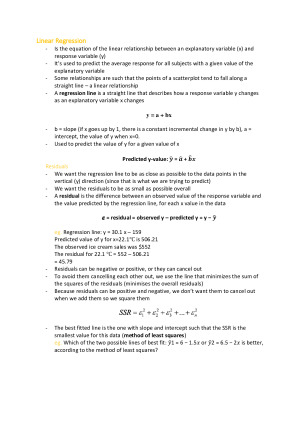 Notes cover all 12 weeks of content with examples: - Correlation Coefficient - Linear Regression - Log, Exponential & Power law functions - Histograms - Five Number Summary - Boxplots - Law of Large Numbers - Sampling Distributions - Central Limit Theorem - Confidence Intervals - Tests of Significance (z-test, t-test, proportions) - Marginal & Conditional distributions - Chi-squared test of independence & goodness of fit - Sampling Methods - Observational & Experimental Designs